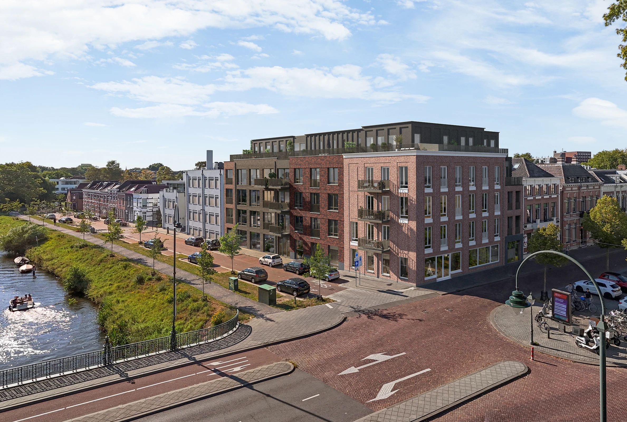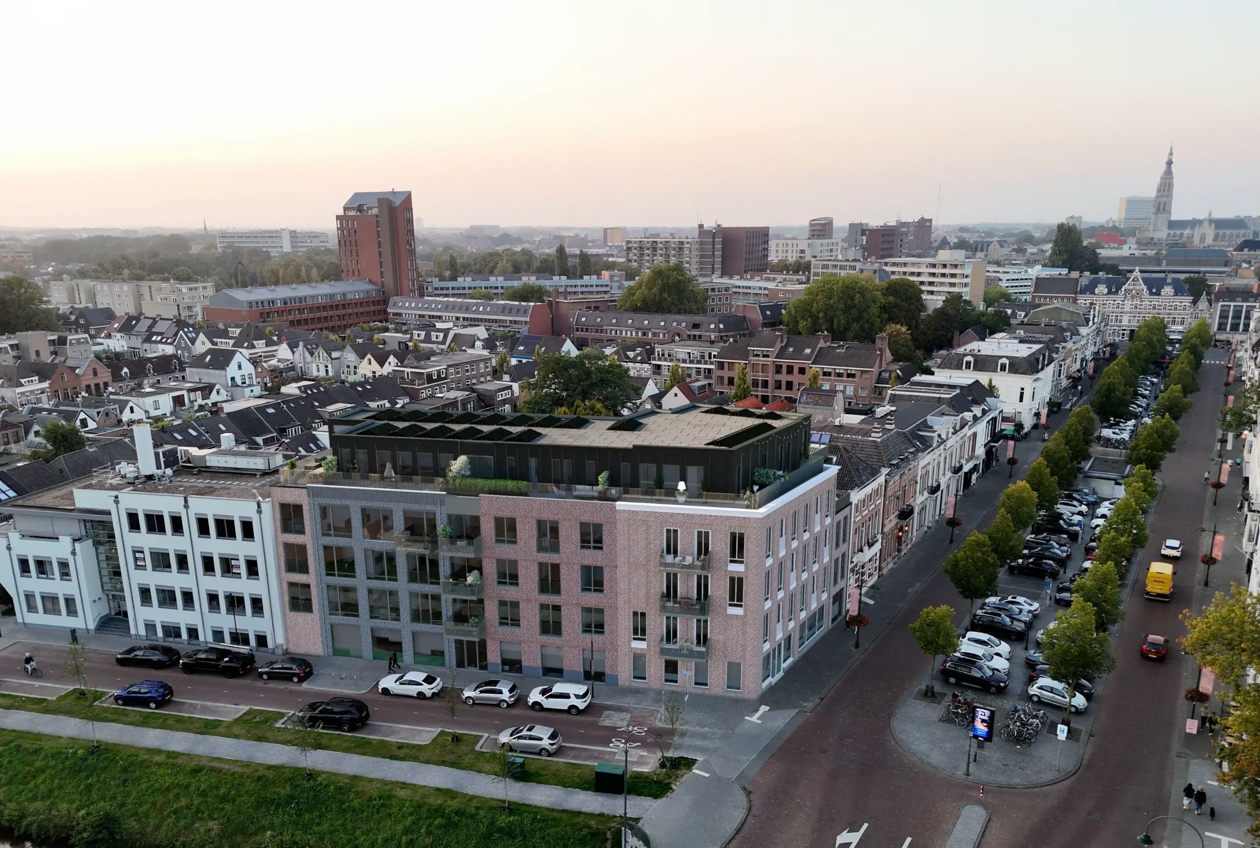 Op een markante locatie in het historische centrum van Breda, direct aan de Marksingel en op de hoek van de Nieuwe Ginnekenstraat, verrijst De Mark Veste: een hoogwaardige herontwikkeling waarin historie, comfort en stedelijke dynamiek samenkomen. Het voormalige kantoorgebouw uit circa 1975 wordt met zorg en visie getransformeerd tot een eigentijdse woonomgeving met 33 appartementen en een commerciële ruimte op de begane grond.